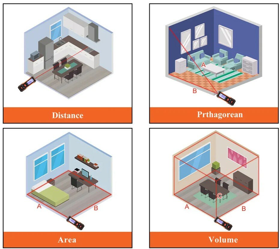 | Функции и особенности | автоматическое отключение, встроенная память, определение мин. и макс. значений, подсветка дисплея, с прицелом, ударопрочный корпус, функция Пифагора, функция непрерывного измерения, функция расчета объема, функция расчета площади, функция расчета углов, функция сложения/вычитания |