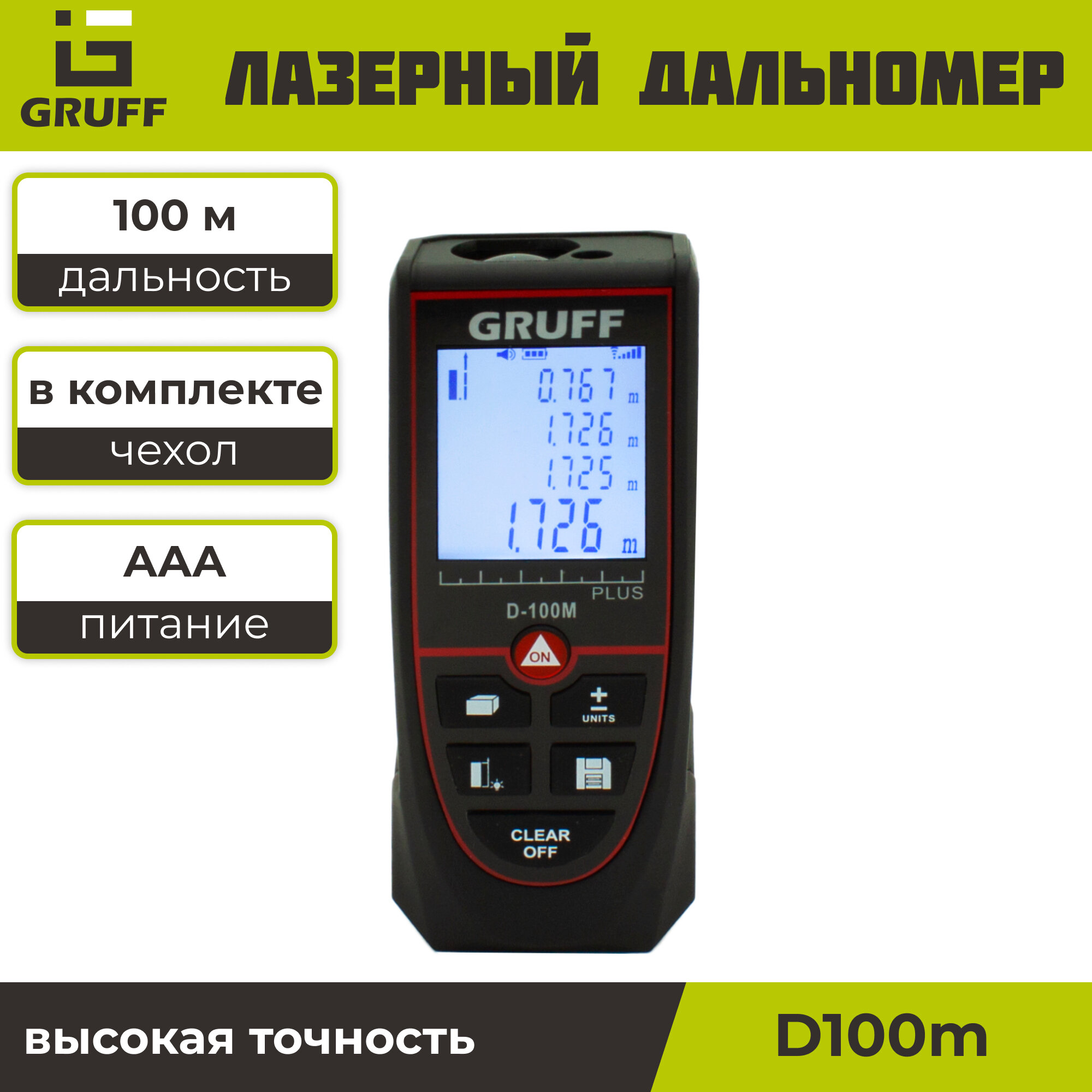 Купить Лазерный дальномер Gruff D100M - измеряет до 100 м