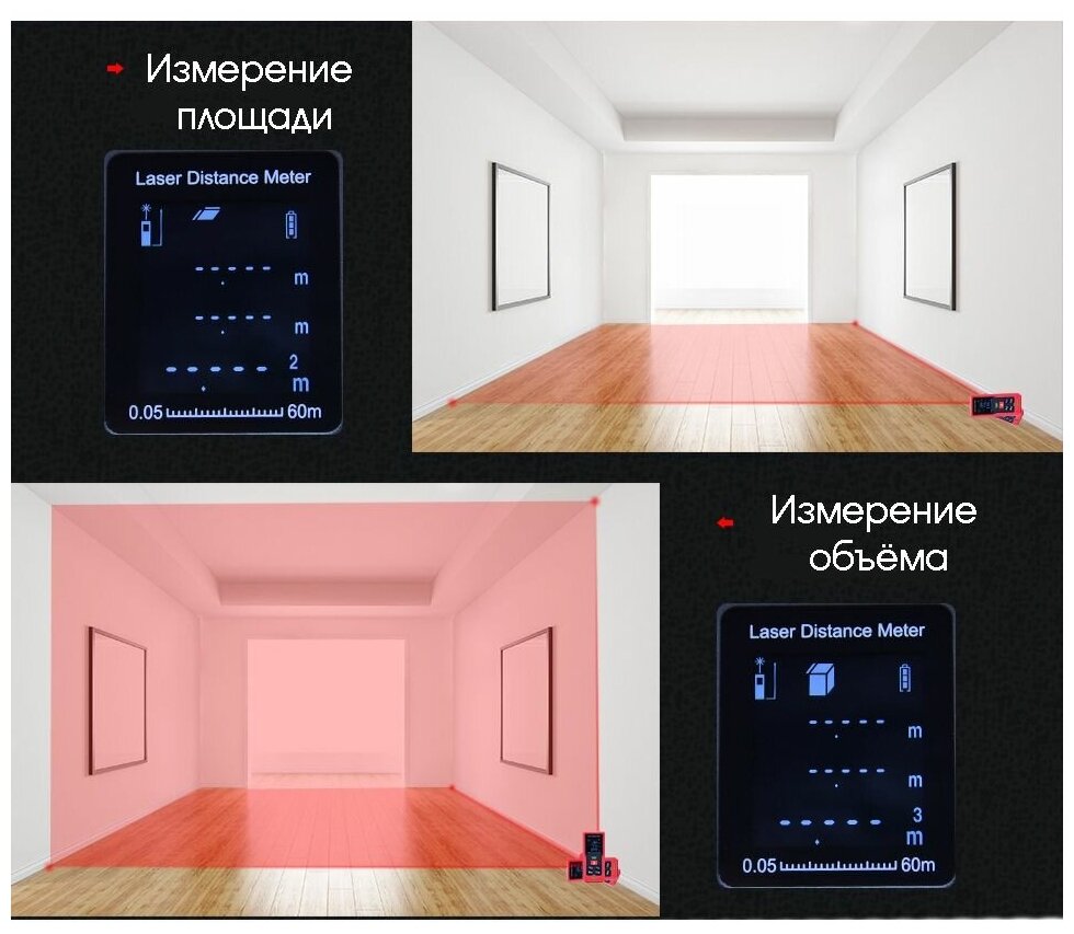 | Функции и особенности | автоматическое отключение, встроенная память, функция Пифагора, функция непрерывного измерения, функция расчета объема, функция расчета площади, функция сложения/вычитания |
