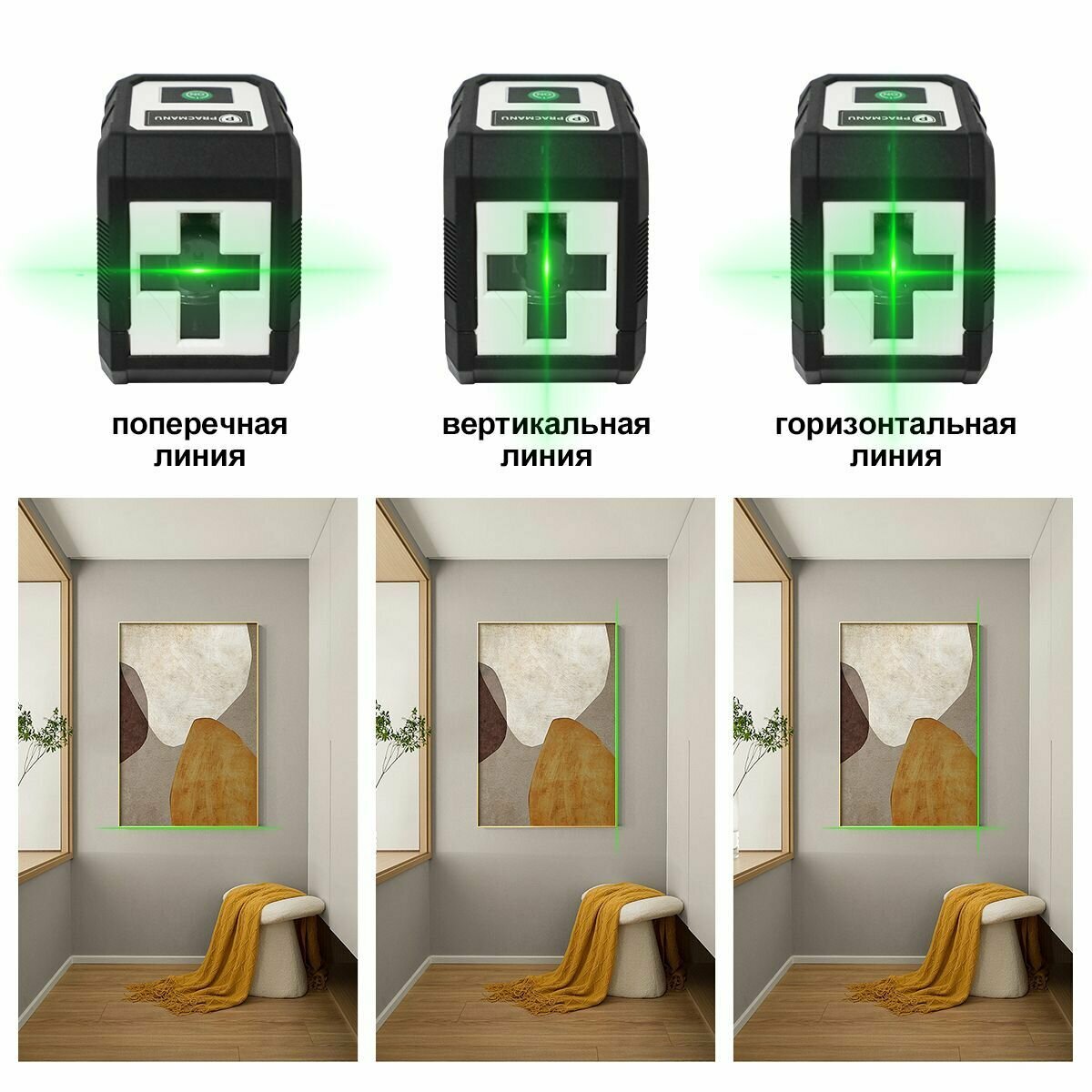 Лазерный уровень/нивелир Pracmanu в сумке, , зеленый, 2 луча. интересное: