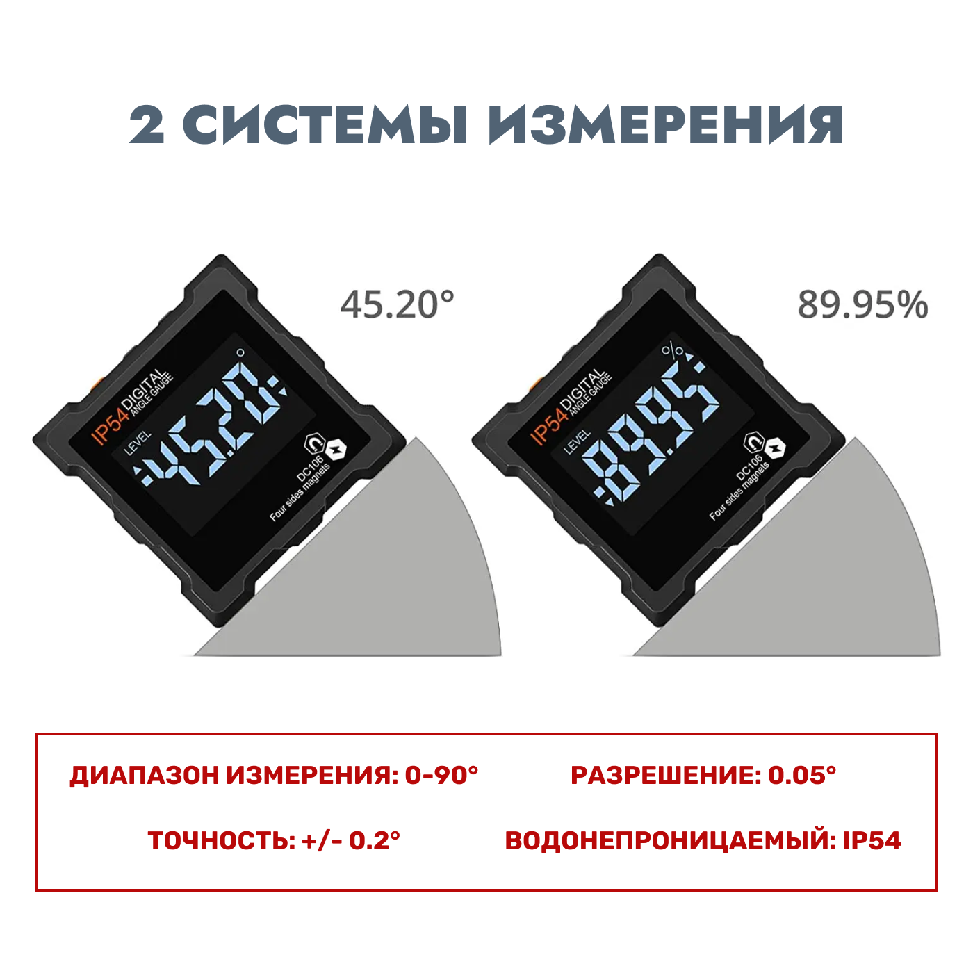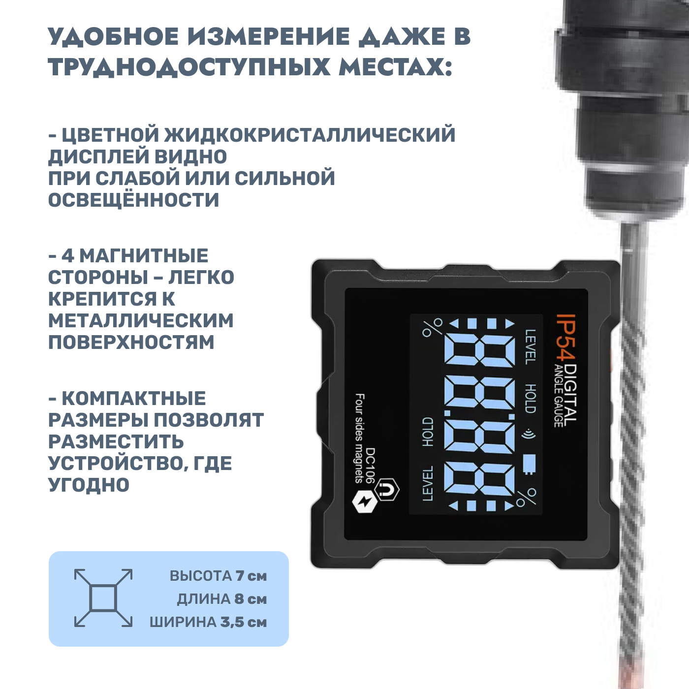 Угломер электронный с магнитами по 4 сторонам IP 54, строительный уровень, измеритель углов с 4 магнитными основаниями для заточки ножей интересное: