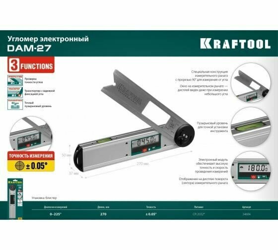 Электронный угломер KRAFTOOL DAM-27, 34684 интересное:
