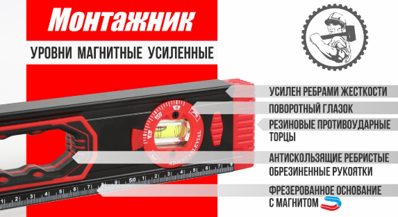 Уровень строительный магнитный Монтажник 1000мм усиленный с поворотным глазком (610100) интересное: