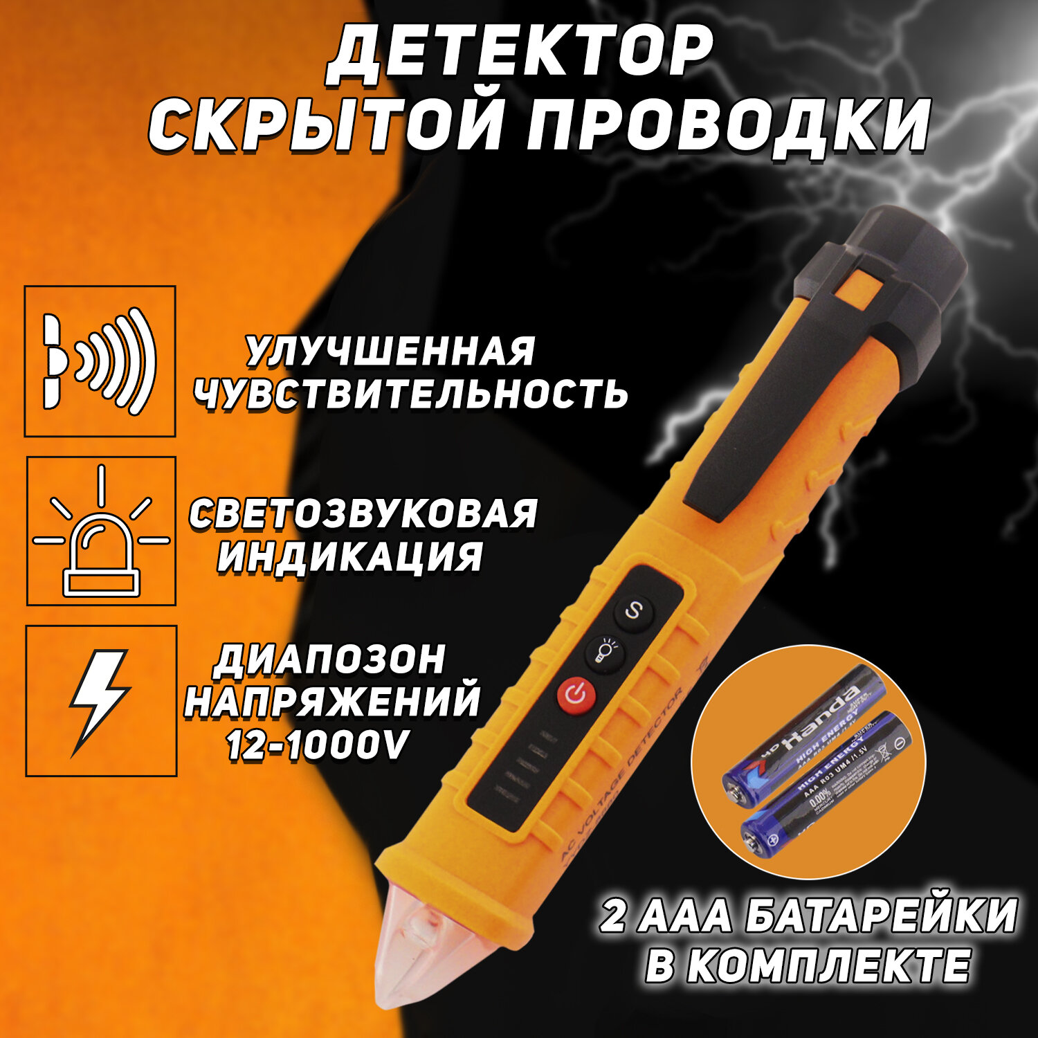 Детектор-индикатор скрытой проводки (+2 батарейки(AAA), фонарик) (AC VOLTAGE DETECTOR) YYDZ-8880 "AVD" интересное: