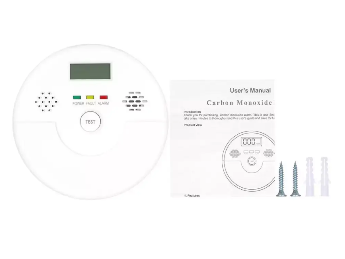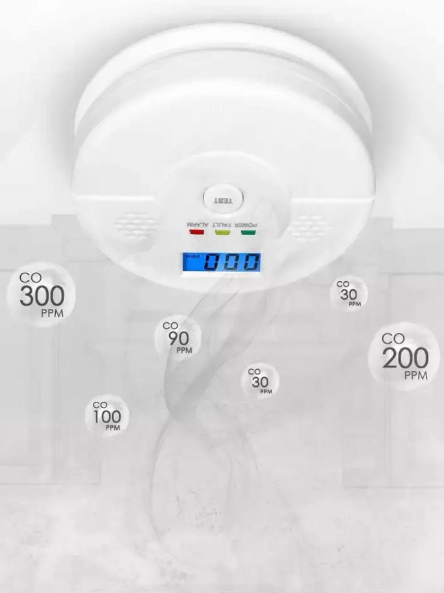 Купить Детектор угарного газа, работающий от батарейки типа крона, с LCD экраном, заряд 7 лет