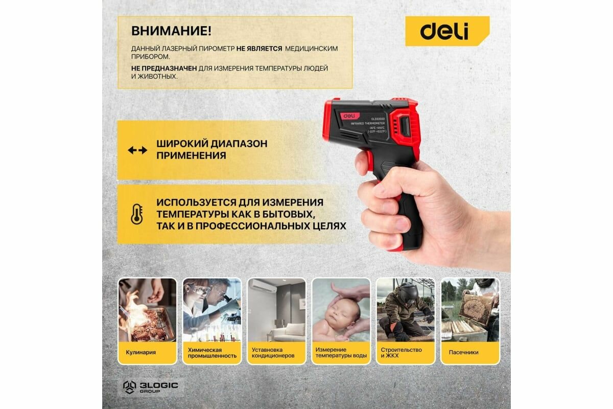 Купить Инфракрасный пирометр (термометр) с цветным экраном DELI DL333550 (диапазон изм. -30-550C)