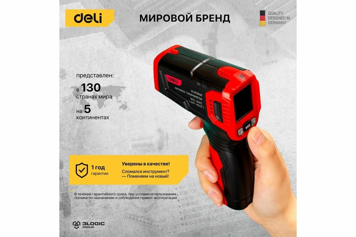 Инфракрасный пирометр (термометр) с цветным экраном DELI DL333550 (диапазон изм. -30-550C) интересное: