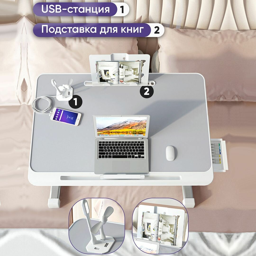 Столик для ноутбука в кровать OQQI, складной, подставка для ноутбука 17" и менее, столик для завтрака 23,5х32х55 см
