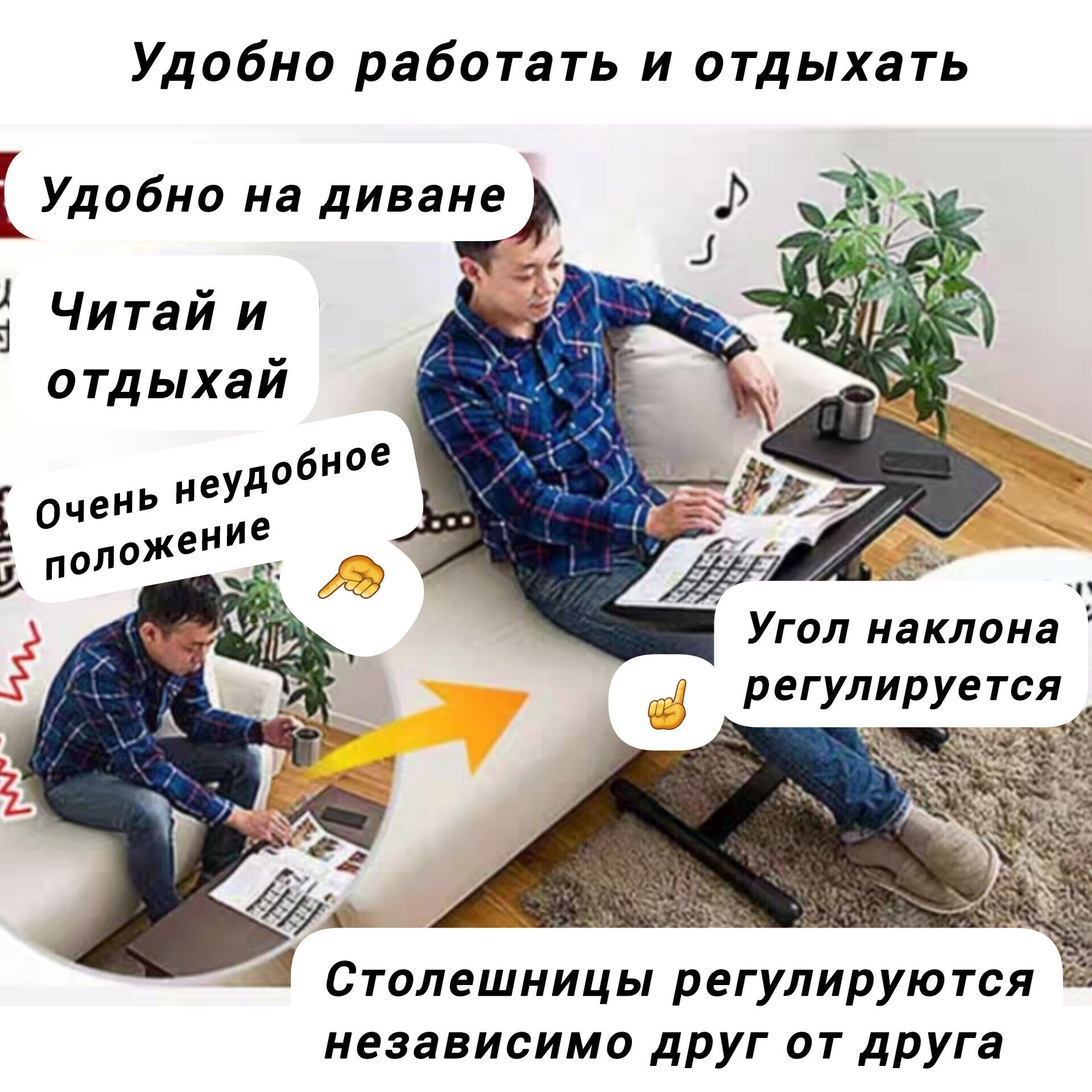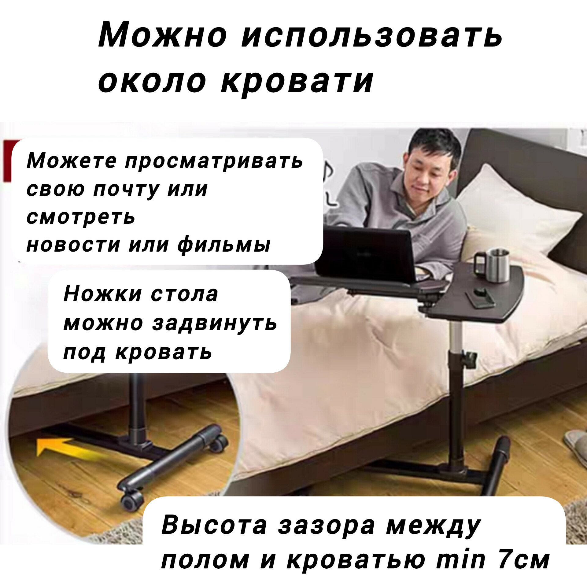 Столик для ноутбука прикроватный на колесиках поворотный полностью регулируемый компьютерный стол интересное: