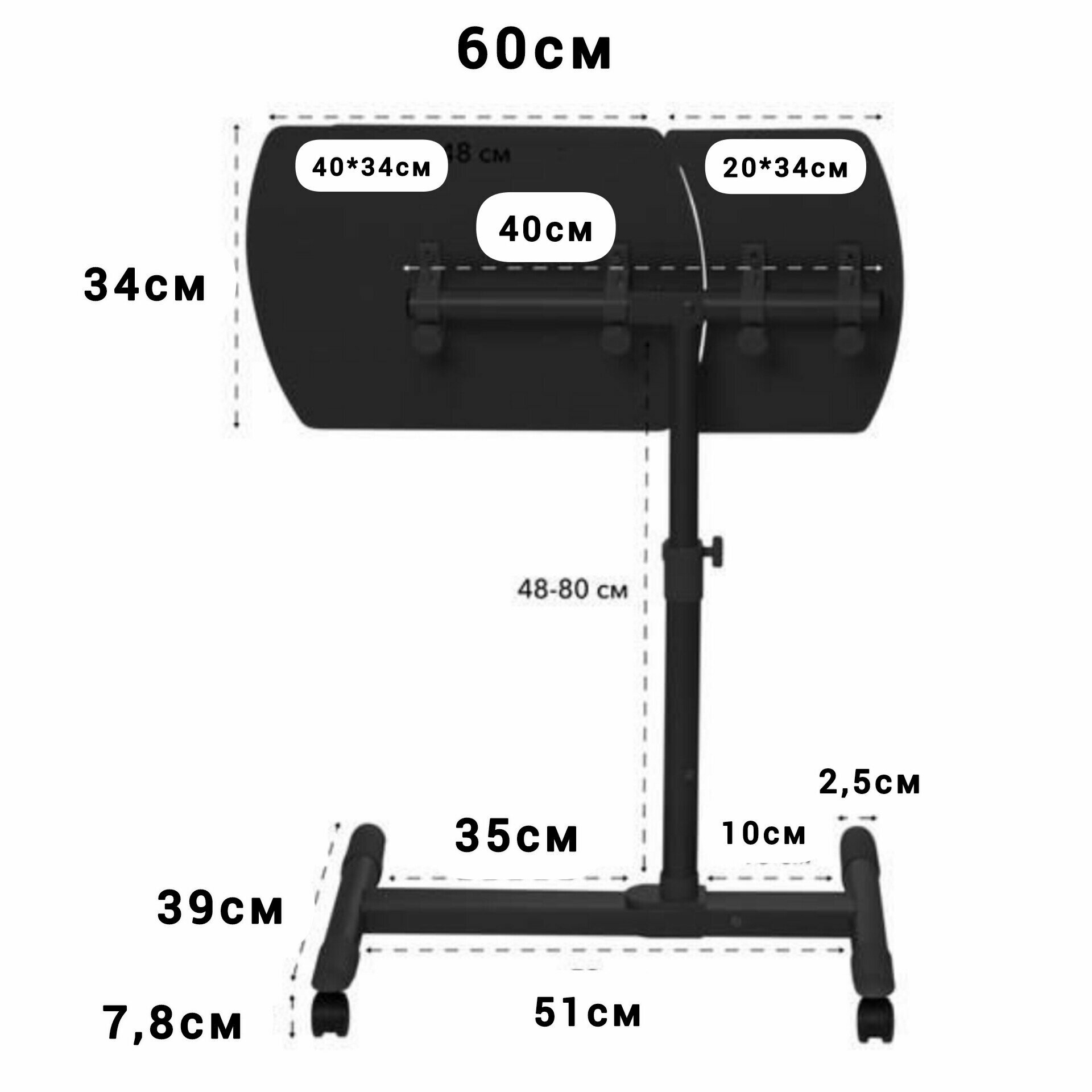 Купить Столик для ноутбука прикроватный на колесиках поворотный полностью регулируемый компьютерный стол