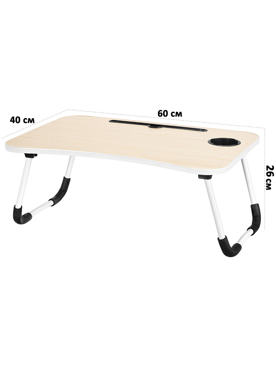 | Дополнительная информация | Складной столик для компьютера "Белый", 60*40*28 см, размер столешницы 60*40*1,4 см, с выдвижным ящиком 20,5*13*2,5 см, расстояние между ножками в разложенном виде 64 см, с противоскользящими мягкими накладками на ножках (ЭВА), максимальная нагрузка 10 кг |