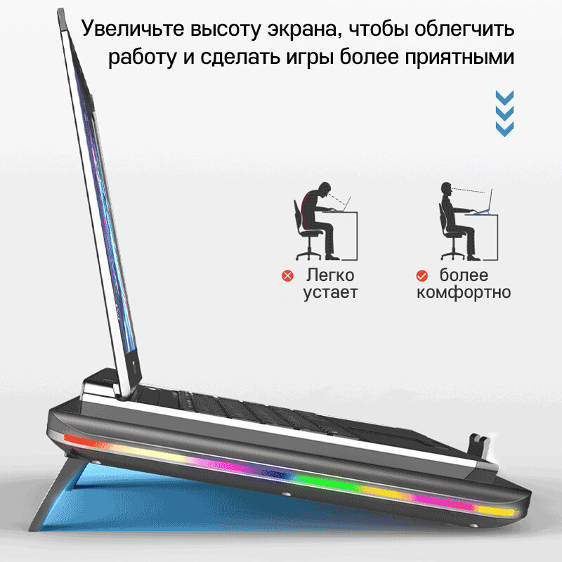 Охлаждающая подставка для ноутбука,Регулируемая, RGB подсветкой интересное: