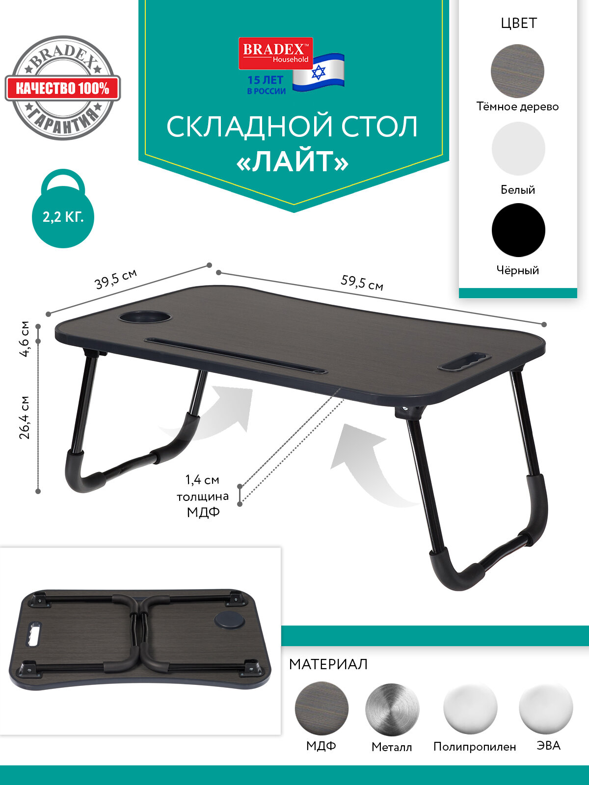 Стол складной с подстаканником Лайт Bradex 59,5x39,5x26,4 см темный интересное: