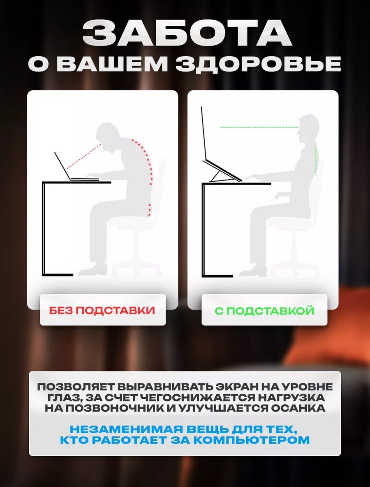 Подставка для ноутбука, черная интересное: