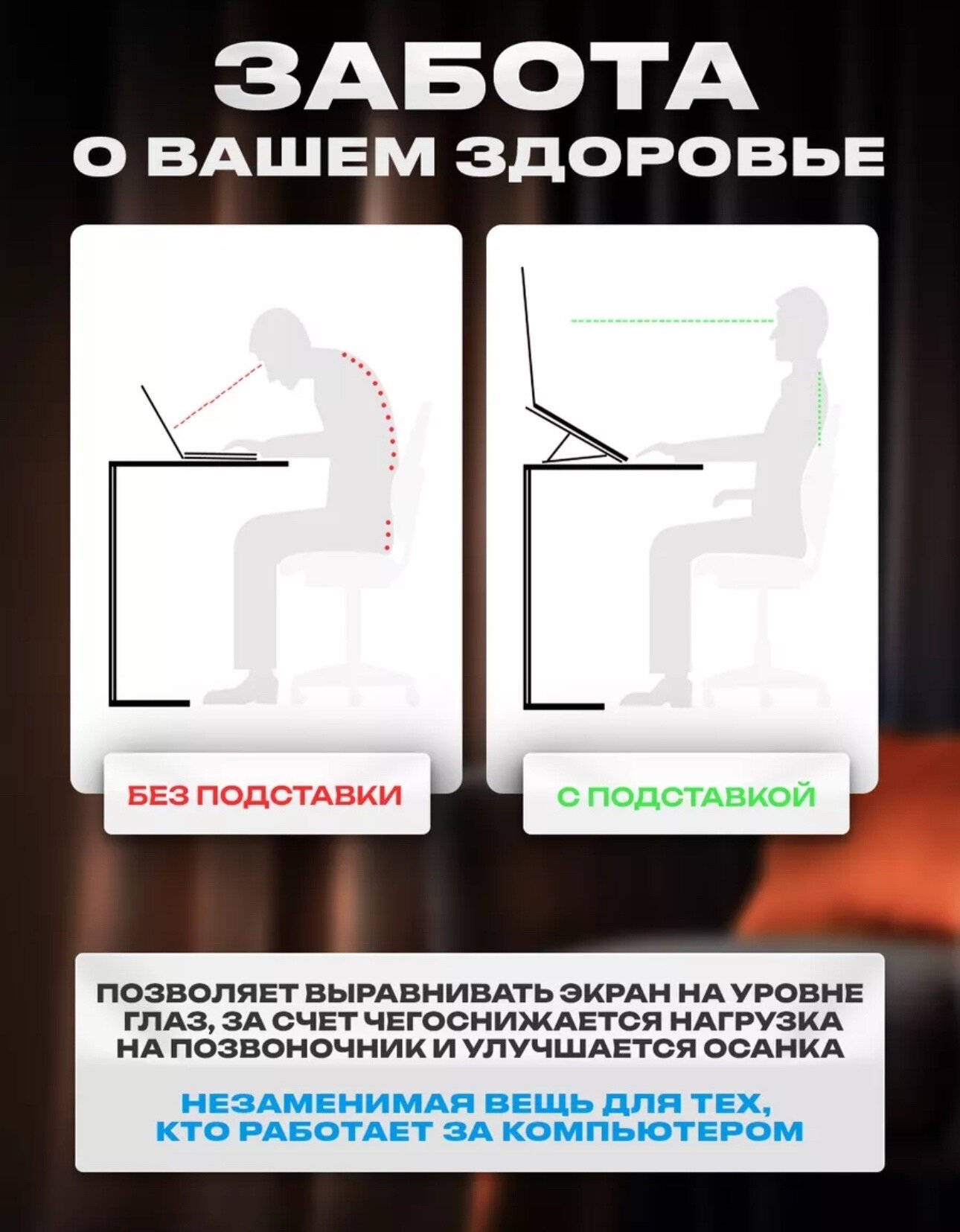 Подставка для ноутбука, черная