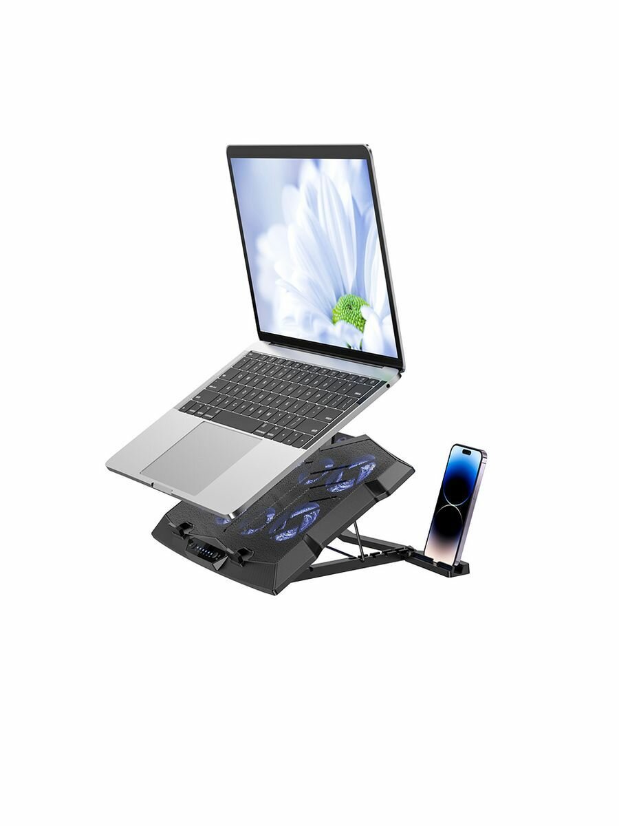 Регулируемая охлаждающая подставка для ноутбуков, 2 вентилятора, подсветка, 5 углов наклона, держатель для смартфона, 2 USB , для экрана 13"-19"