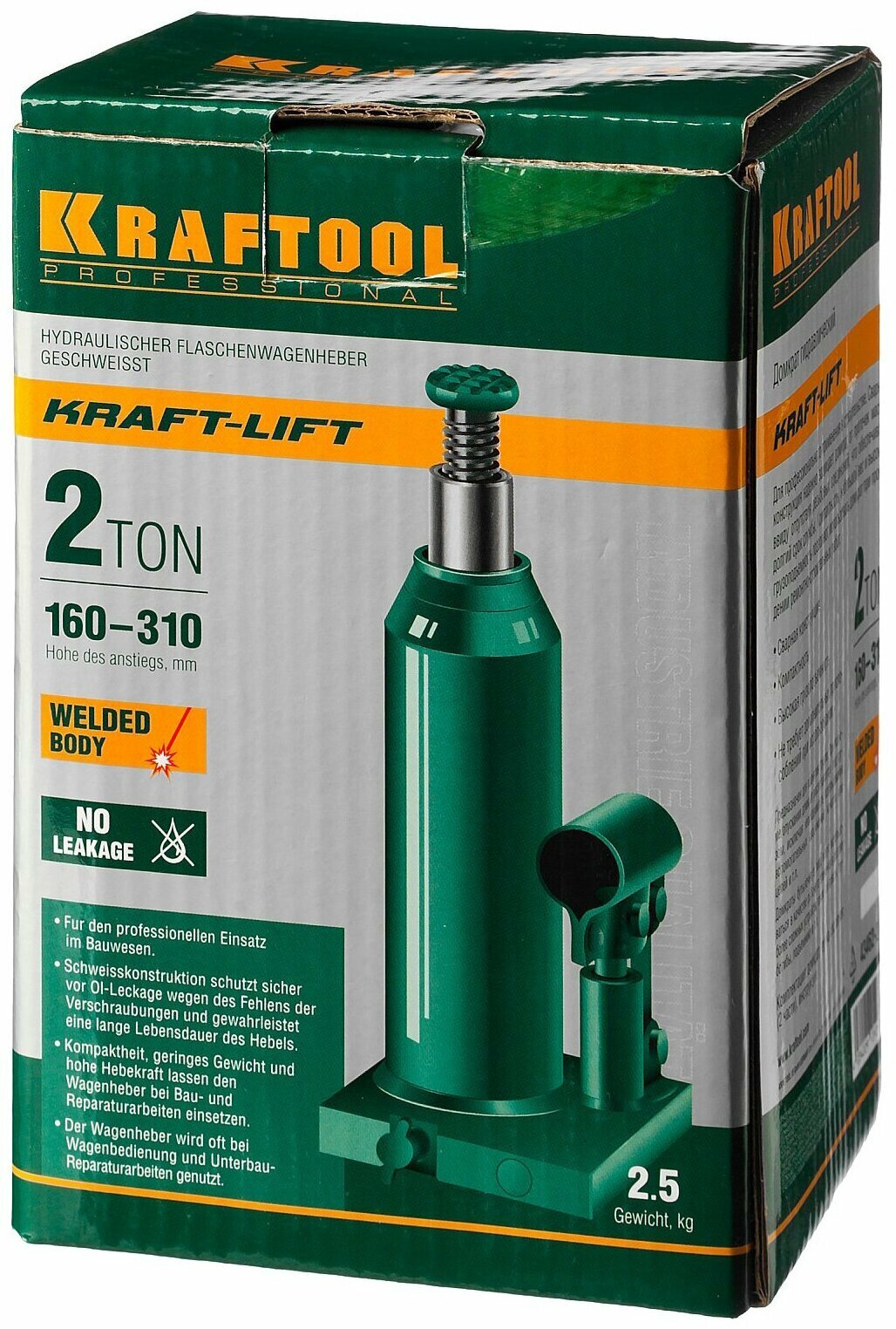 Домкрат гидравлический бутылочный KRAFTOOL KRAFT LIFT (2 тонны + высота: от 160 до 310 мм) / 43462-2 интересное: