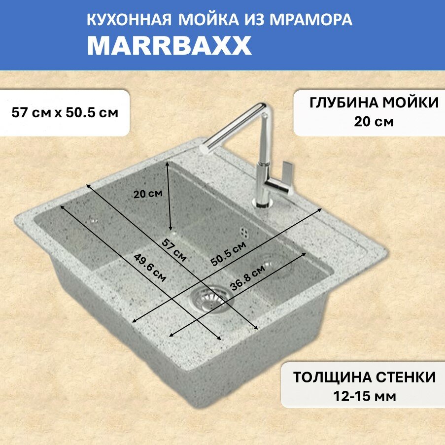 Мойка кухонная MARRBAXX Джекки Z9Q1 белый лед 570*505*200
