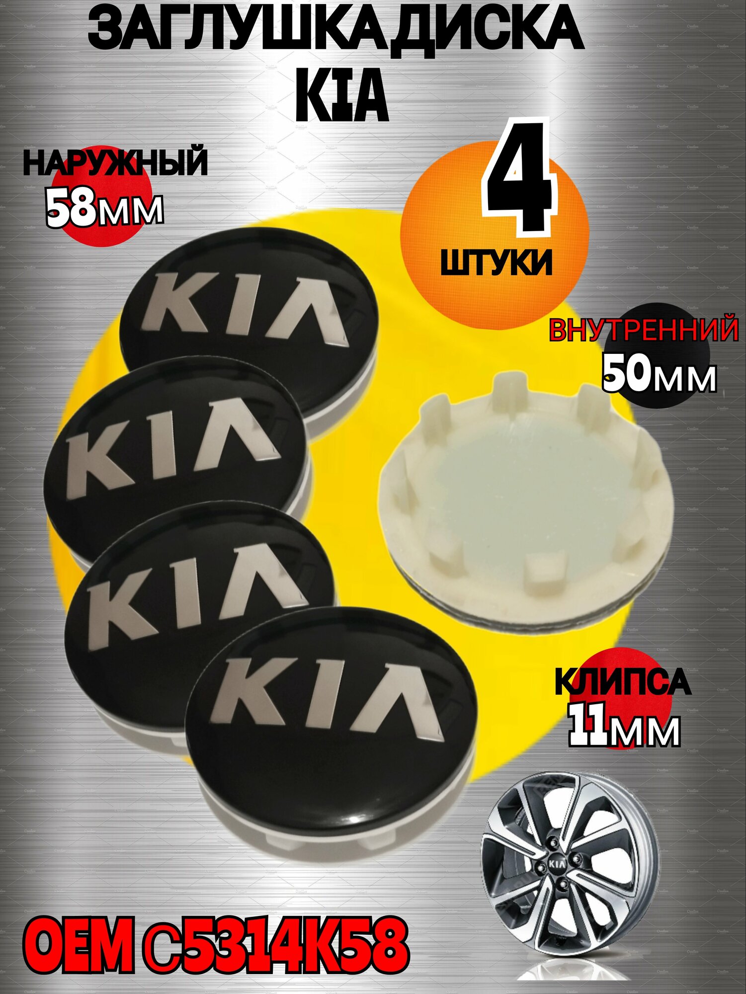 Заглушка диска/Колпачок ступицы литого диска KIA КИА 58-50 цвет черный 4 штуки интересное: