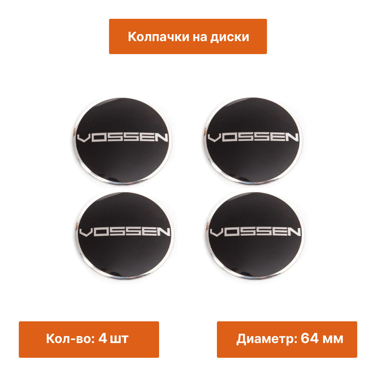 Купить Комплект: алюминиевая эмблема на колпак диска Vossen черная 64 мм 4 шт.