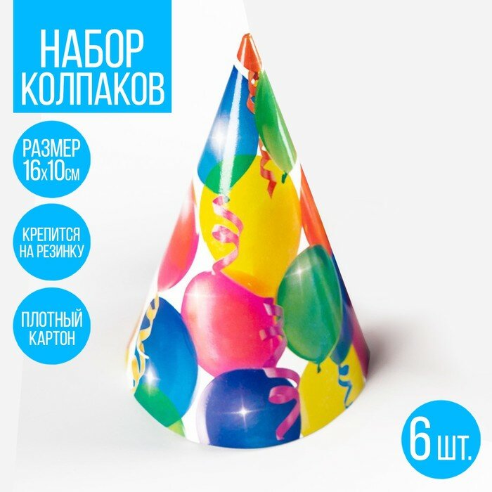 Купить Колпак бумажный «Праздник», шарики и серпантин, набор 6 шт.