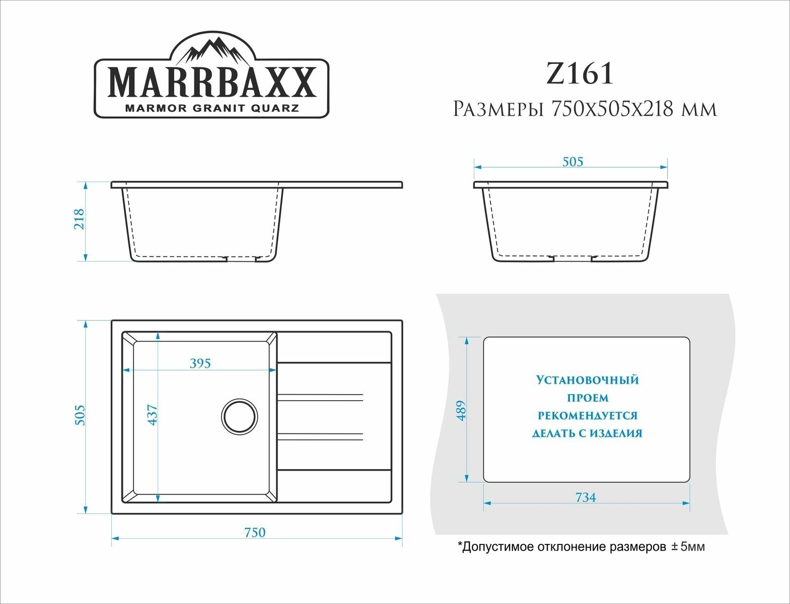 Мойка кухонная MARRBAXX Джоли Z161Q4 чёрный 750*505*218