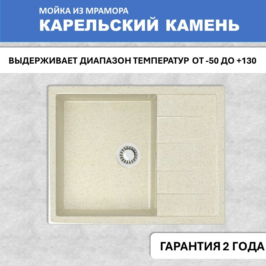 Кухонная мойка Карельский камень модель 150 (575*470) Q6 Слоновая кость