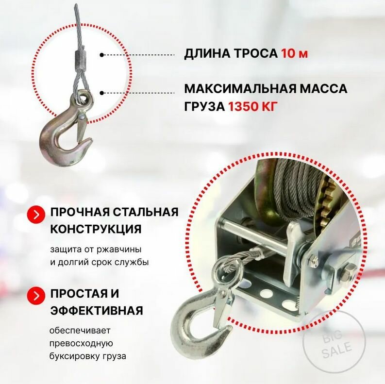 Лебедка ручная шестеренчатая TRT 1301C металлический трос 1350 кг длина троса 10 м ермак 737-013 интересное: