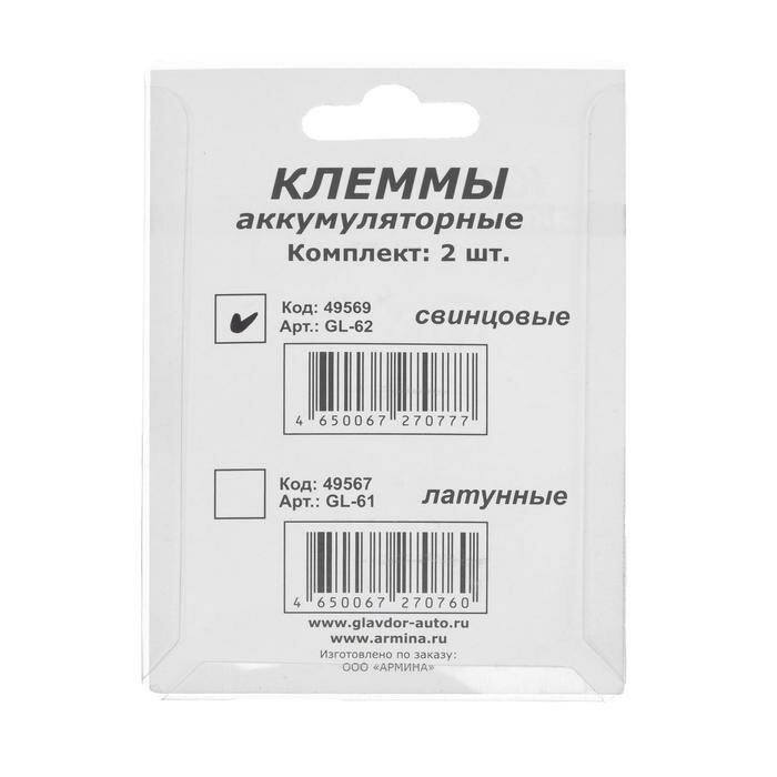 Клеммы аккумуляторные "главдор", свинец, набор 2 шт интересное:
