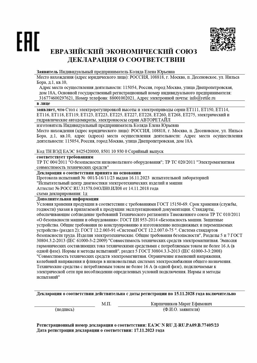 | Подробная комплектация | электрогидравлический домкрат, электрокомпрессор с двумя насадками и одной иглой для накачки мячей, электрогайковерт с двумя насадками 17-19 мм и 21-23 мм, знак аварийной остановки, молоток безопасности, кабель питания к прикуривателю, переходник питания от аккумулятора на прикуриватель, перчатки, шестигранный ключ, инструкция, кейс. |