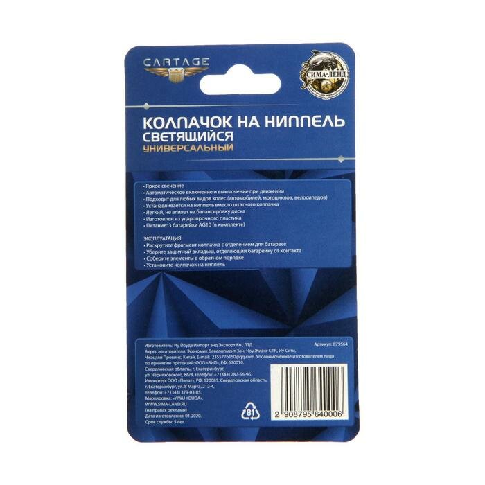 Светящийся колпачок на вентиль TORSO, универсальный, набор 2 шт, микс 879564 интересное: