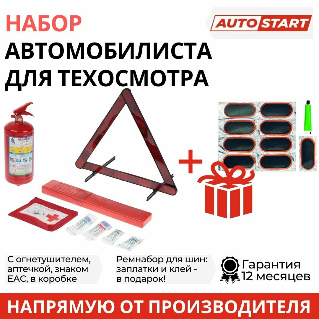 Набор автомобилиста с огнетушителем N1 (огнетушитель ОП-2, знак RT-199 EAC, набор "Дорожная аптечка", коробка) + подарок, AS-N1-1/2 интересное: