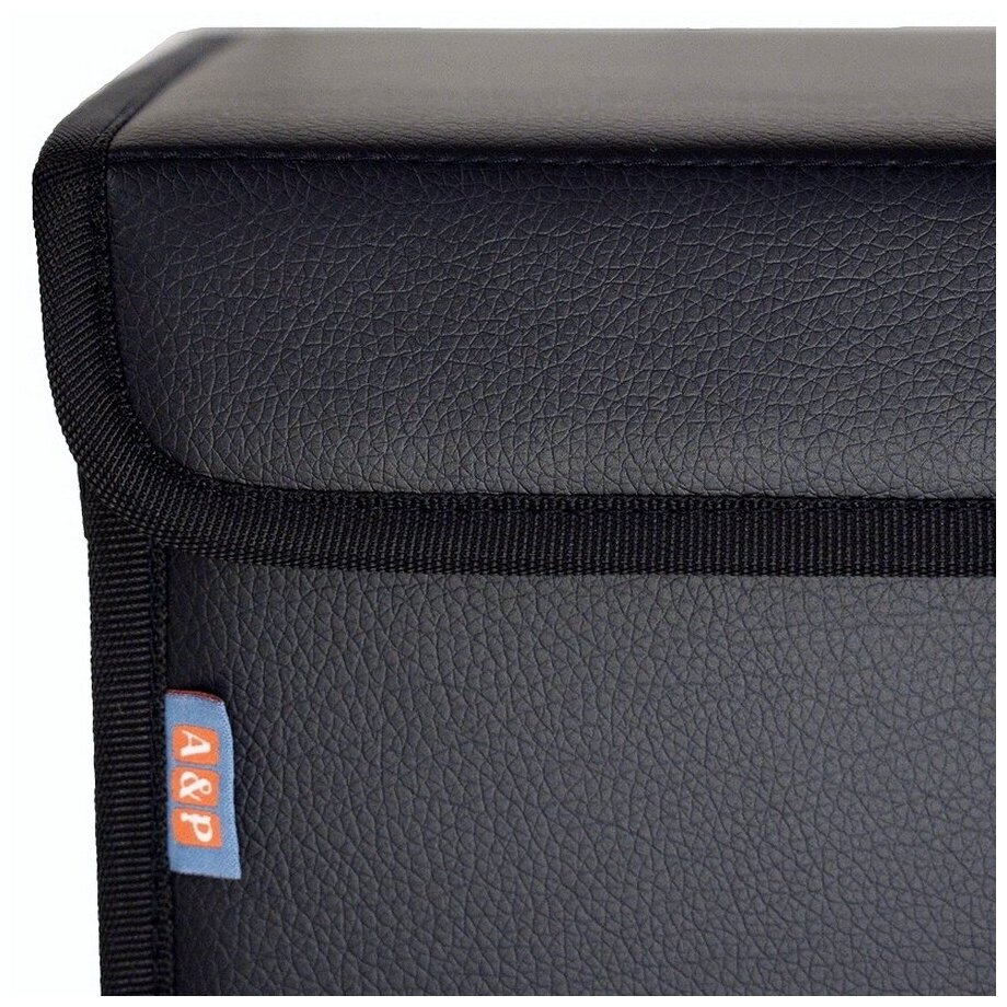 Саквояж в багажник автомобильный эко кожа черная синий ромб, объем 45 л