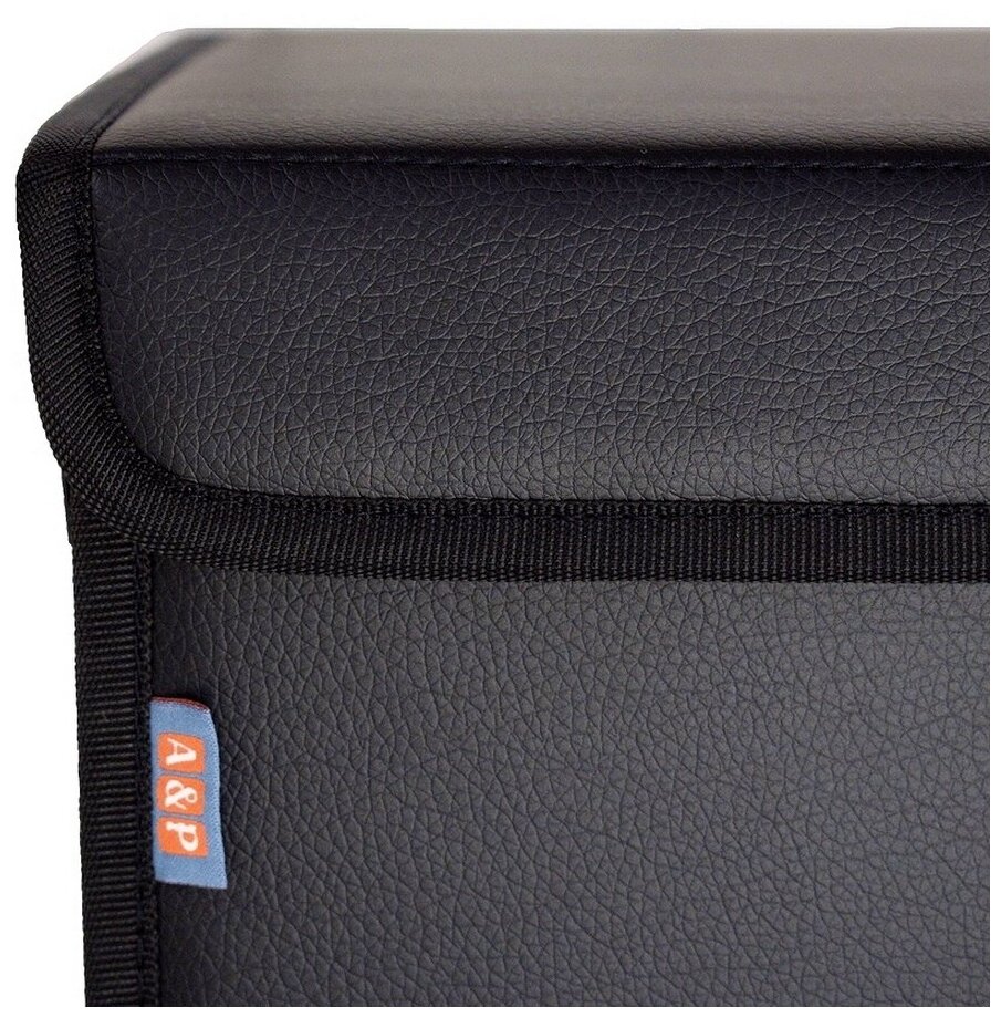 Саквояж в багажник автомобильный эко кожа черная синий ромб, объем 45 л