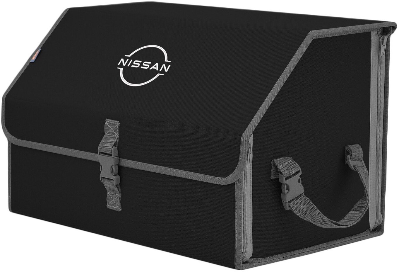 Органайзер-саквояж в багажник "Союз" (размер XL Plus). Цвет: черный с серой окантовкой и вышивкой Nissan (Ниссан).