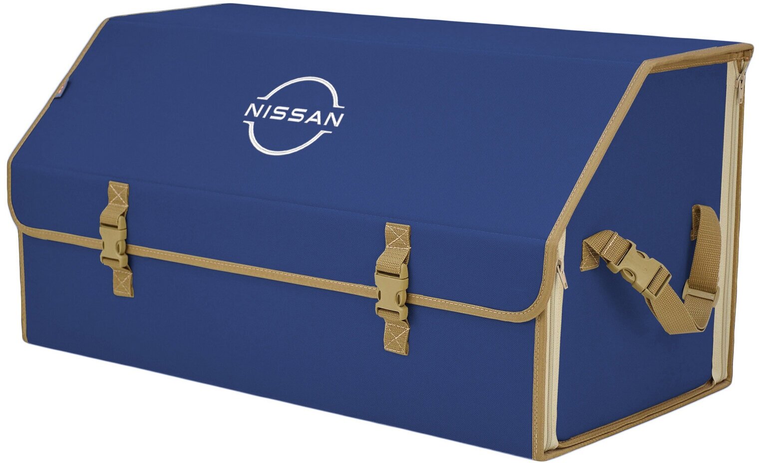 Купить Органайзер-саквояж в багажник "Союз" (размер XL Plus). Цвет: синий с бежевой окантовкой и вышивкой Nissan (Ниссан).