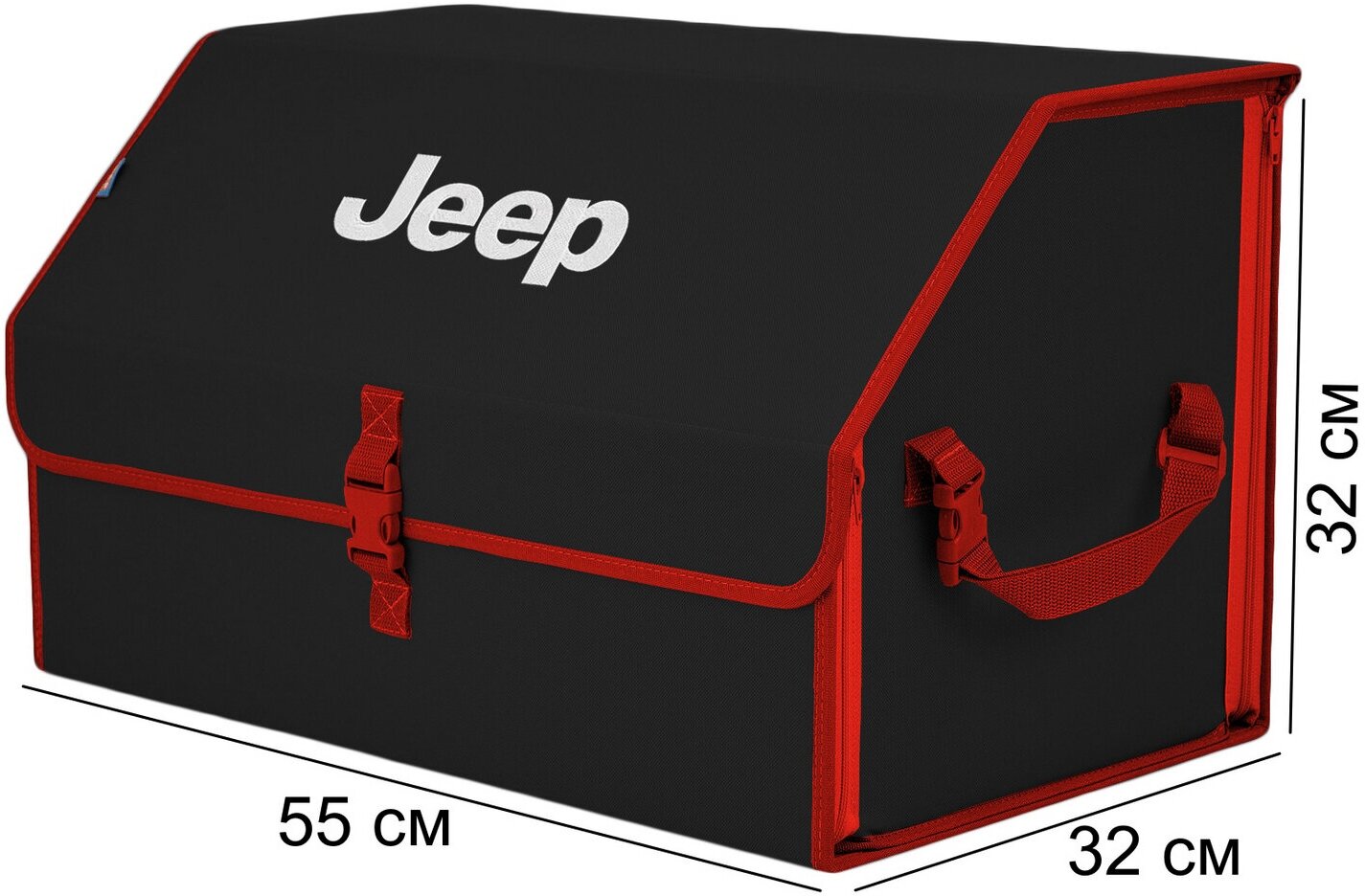Купить Органайзер-саквояж в багажник "Союз" (размер XL). Цвет: черный с красной окантовкой и вышивкой Jeep (Джип).