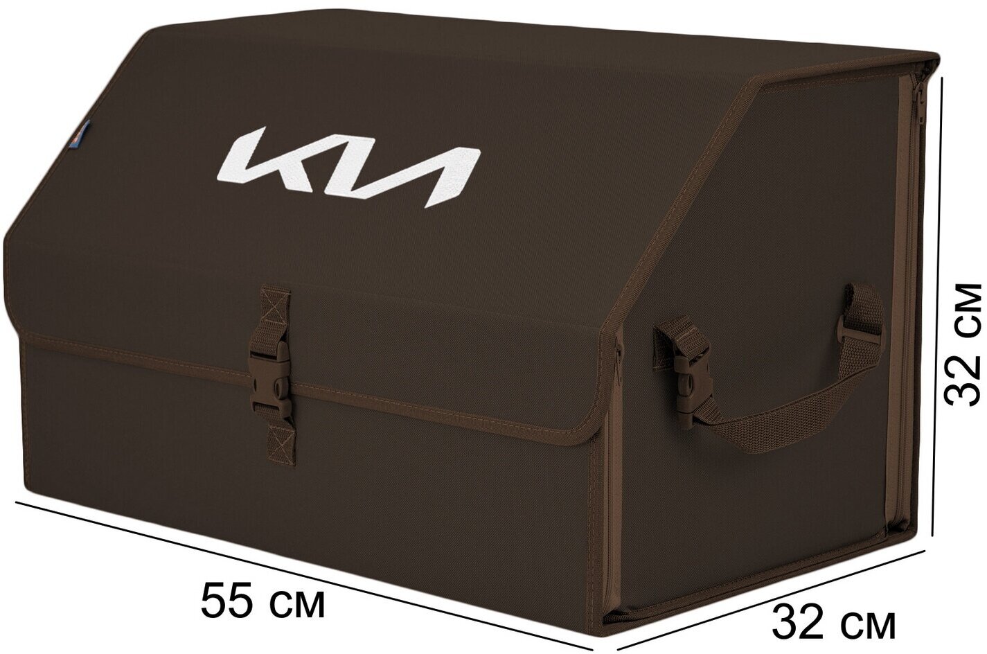 Органайзер-саквояж в багажник "Союз" (размер XL Plus). Цвет: коричневый с вышивкой KIA (КИА).