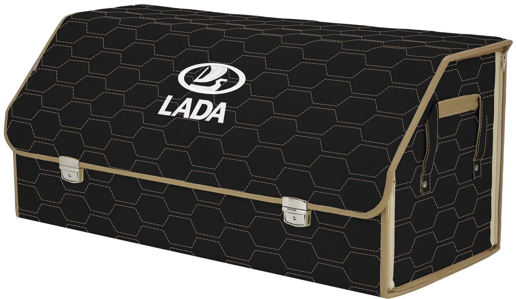 Купить Органайзер-саквояж в багажник "Союз Премиум" (размер XXL). Цвет: черный с бежевой прострочкой Соты и вышивкой LADA (лада).