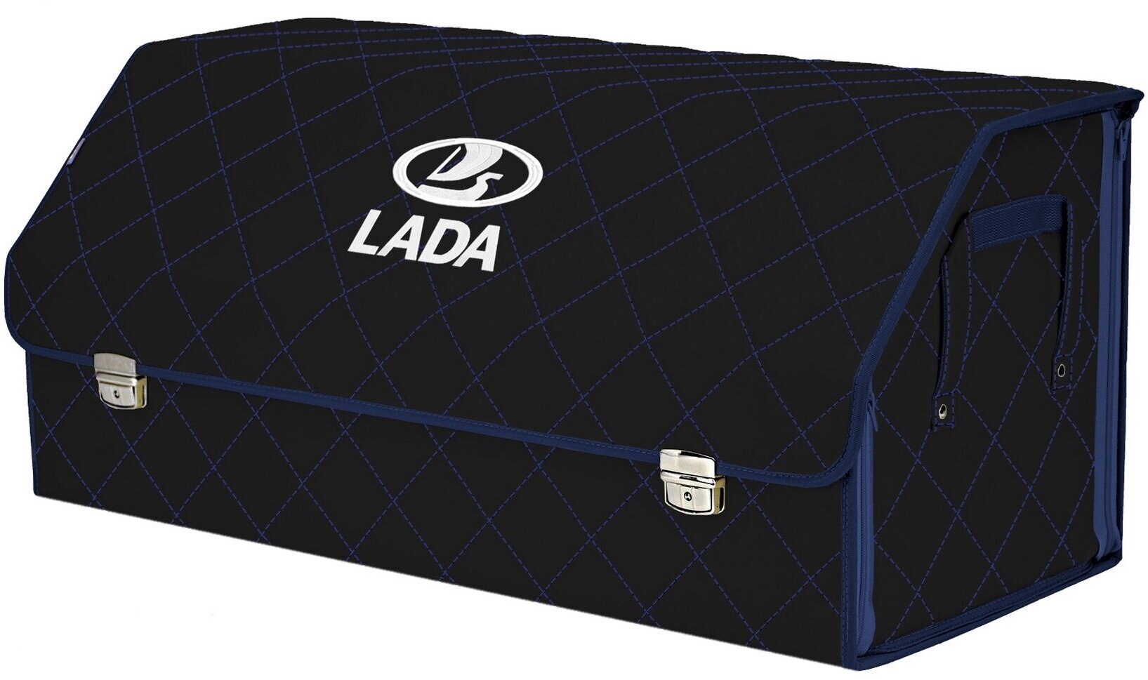 Органайзер-саквояж в багажник "Союз Премиум" (размер L). Цвет: черный с синей прострочкой Ромб и вышивкой LADA (лада).