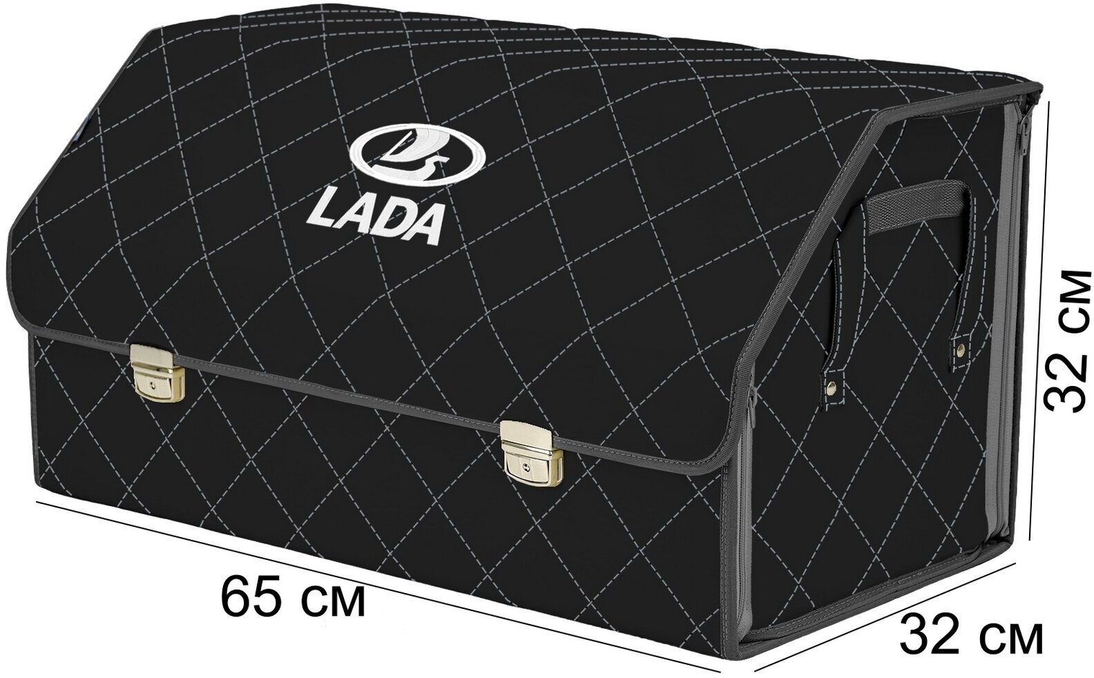 Органайзер-саквояж в багажник "Союз Премиум" (размер L). Цвет: черный с серой прострочкой Ромб и вышивкой LADA (лада).