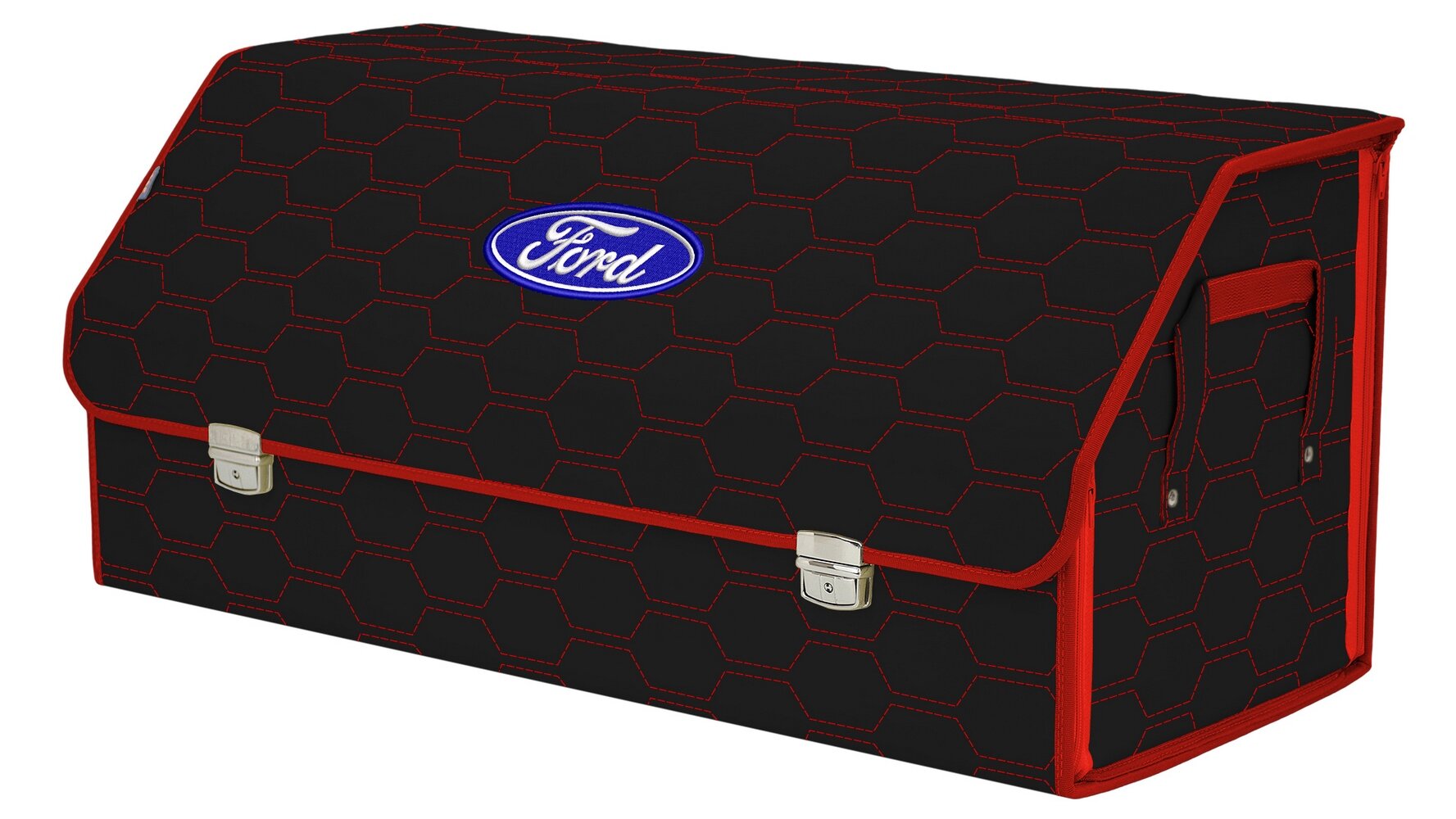 Купить Органайзер-саквояж в багажник "Союз Премиум" (размер XXL). Цвет: черный с красной прострочкой Соты и вышивкой Ford (Форд).