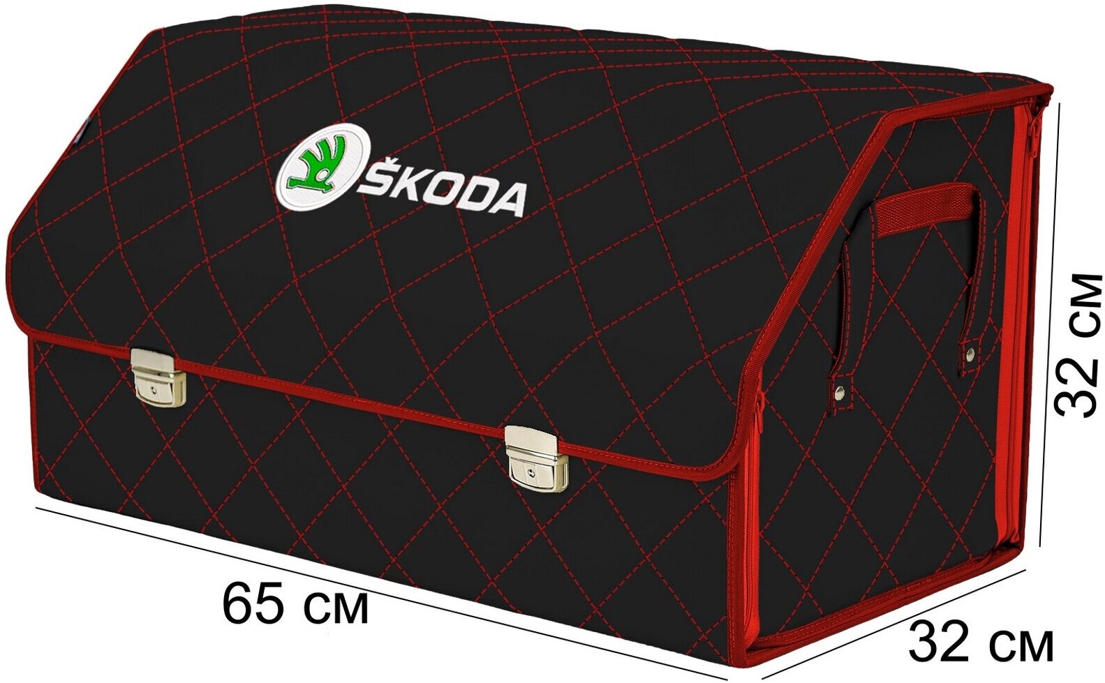 Купить Органайзер-саквояж в багажник "Союз Премиум" (размер XL Plus). Цвет: черный с красной прострочкой Ромб и вышивкой Skoda (Шкода).
