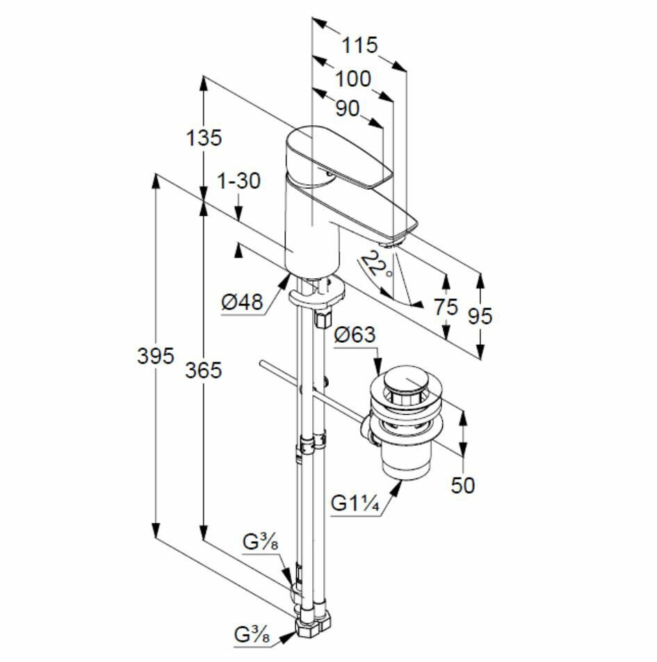 Смеситель для раковины с донным клапаном Kludi Pure&Solid 342760575