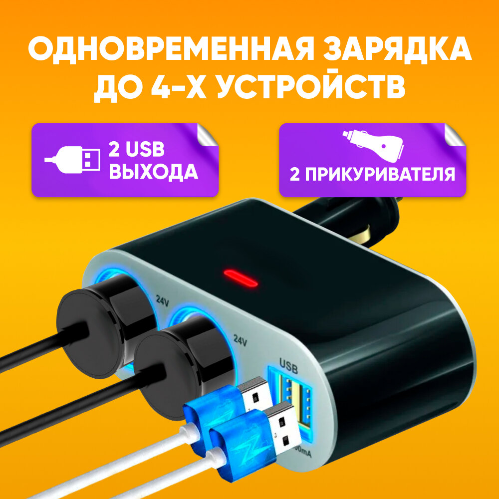 Разветвитель usb автомобильный в прикуриватель авто, зарядное устройство в машину, быстрая зарядка