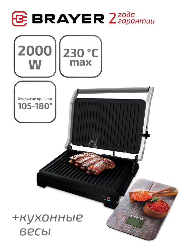 Электрический гриль-пресс BRAYER BR2005 + кухонные электронные весы в подарок интересное: