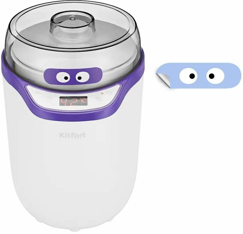 Йогуртница Kitfort КТ-2077-1, 25 Вт, 1600 мл, 1800 мл, емкостей - 2 шт, дисплей, таймер, бело-фиолетовый