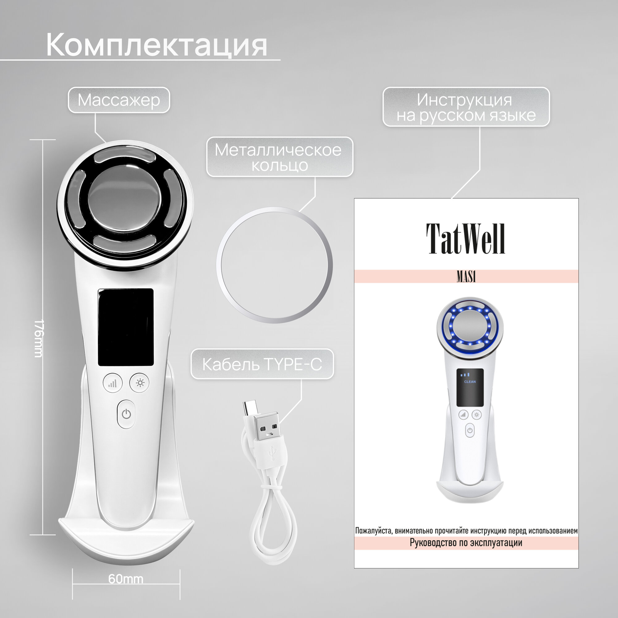 | Комплектность | Коробка - 1 шт; Массажер - 1 шт; Зарядный кабель - 1 шт; Инструкция на русском языке - 1 шт |