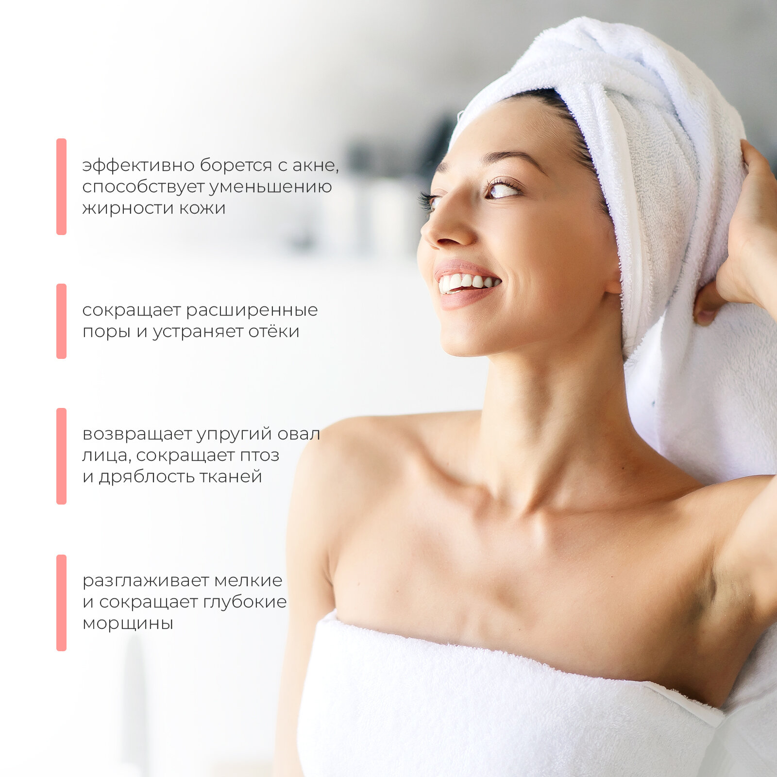 | Эффект | лифтинг / осветление пигментных пятен / разглаживание морщин / улучшение кровоснабжения / уменьшение отеков / уменьшение пор |