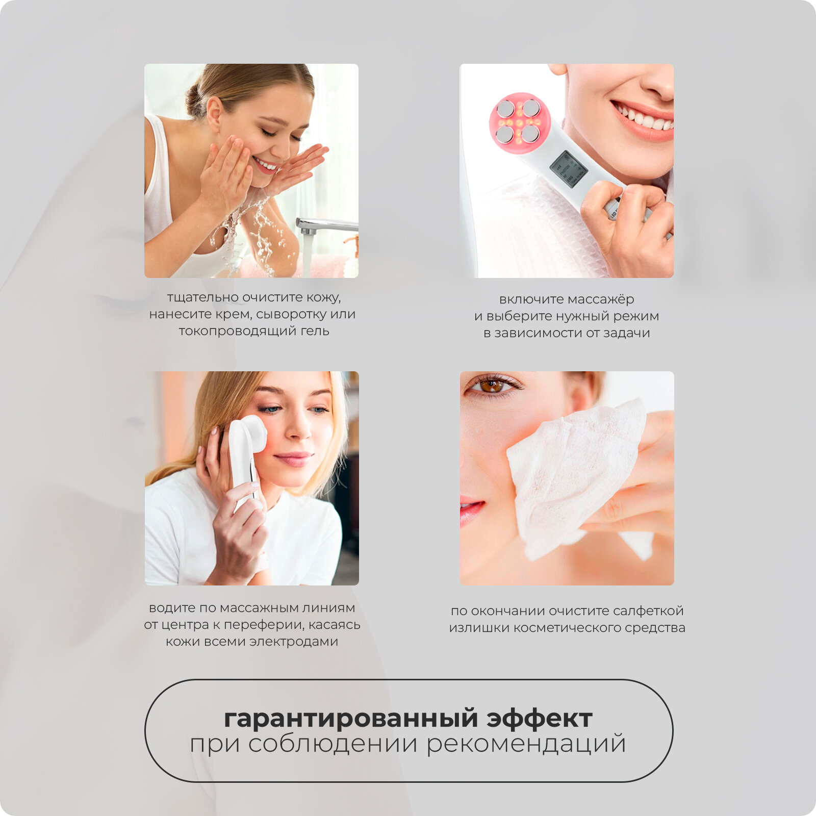| Назначение | антивозрастной уход / лечение акне / массаж / нанесение средств по уходу / очищение / увлажнение / усиление действия косметических средств |
